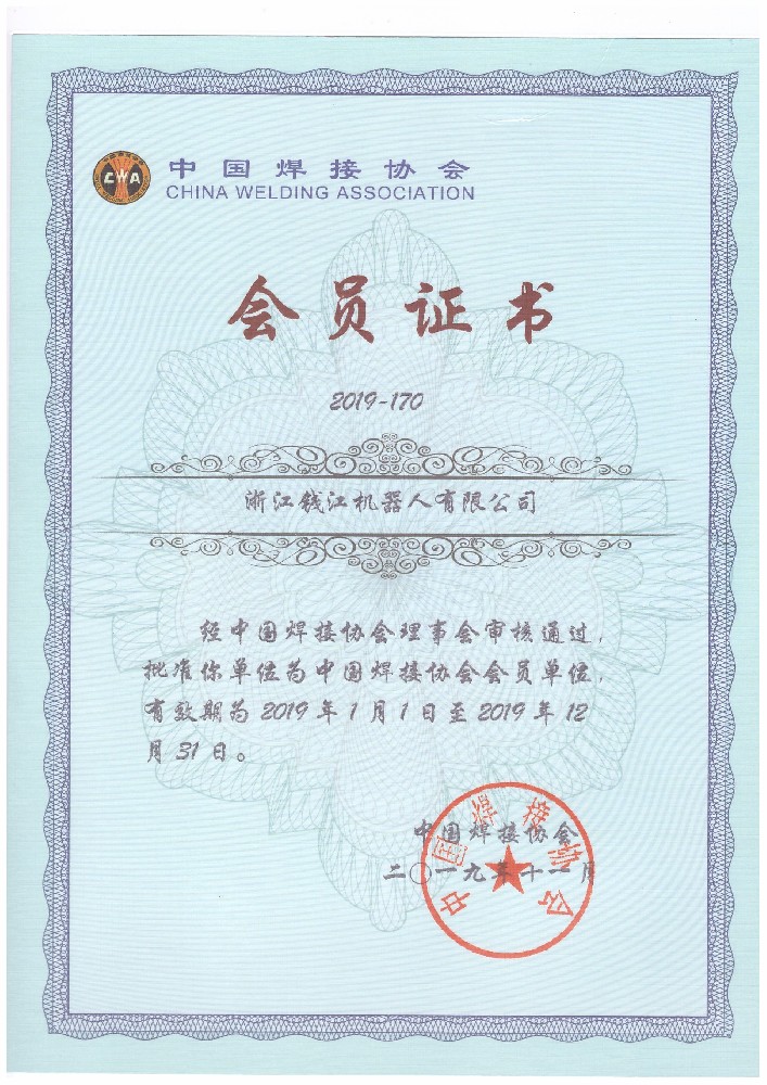 焊接協會會員證書